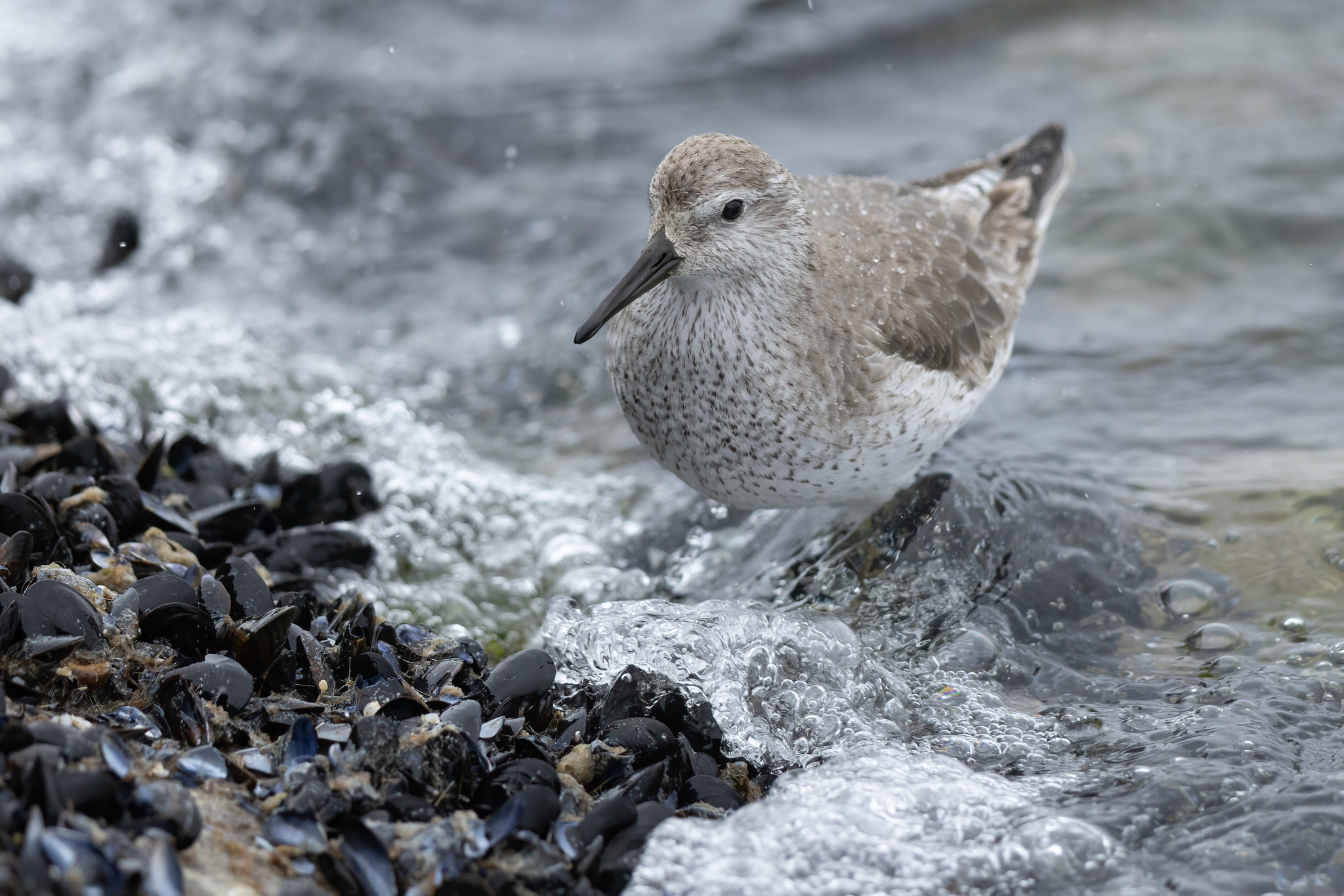 [edit]On the breeding grounds, knots eat mostly spiders, arthropods, larvae, and some plant material obtained by surface pecking, and on the wintering and migratory grounds they eat a variety of hard-shelled prey such as bivalves (including mussels),[25] gastropods and small crabs that are ingested whole and crushed by a muscular stomach.[20]