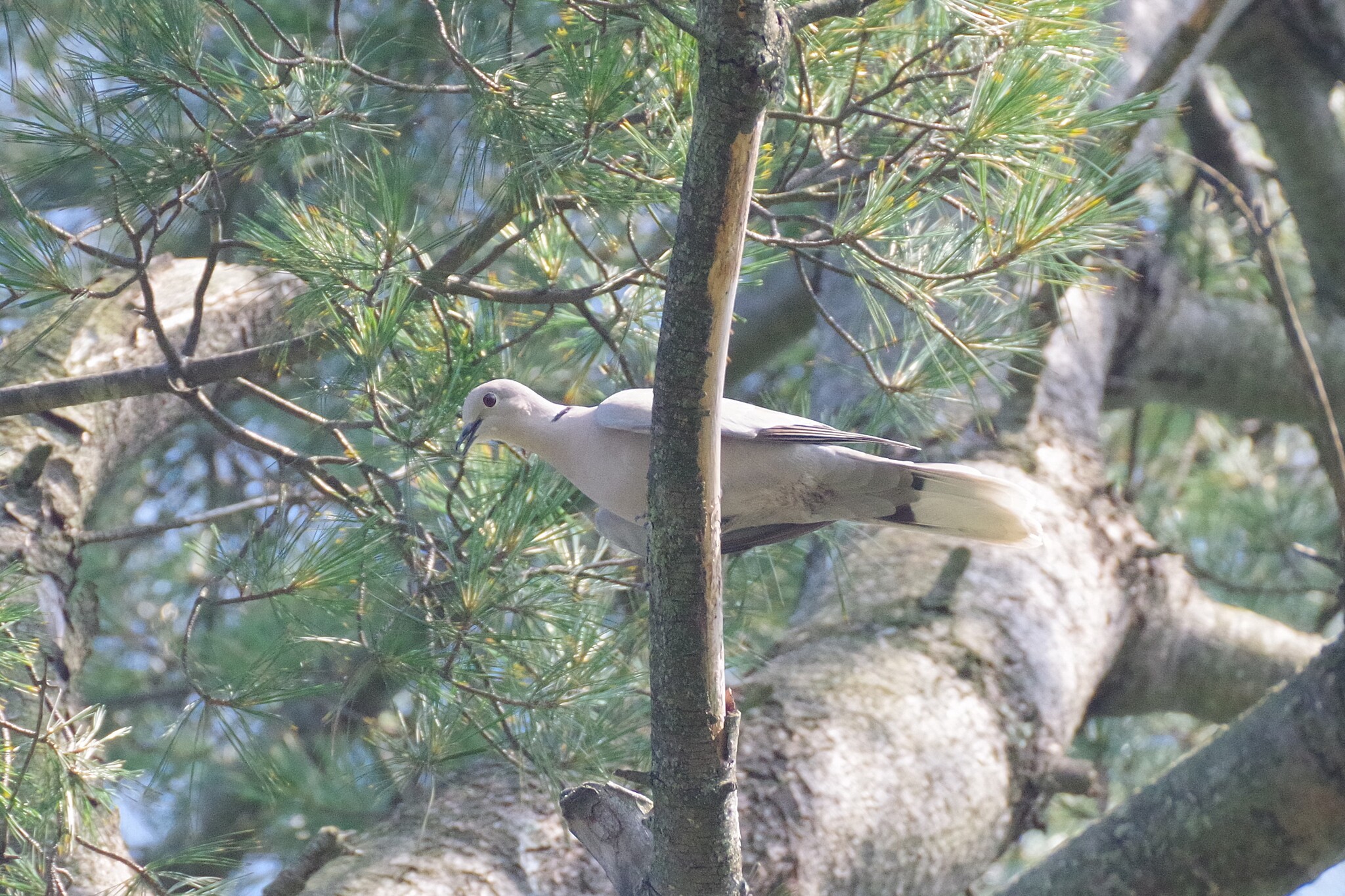 The Eurasian collared dove (Streptopelia decaocto), often simply just collared dove, is a dove species native to Europe, Asia, and northern Africa. It has also been introduced to Japan, North and Central America, and the islands in the Caribbean.