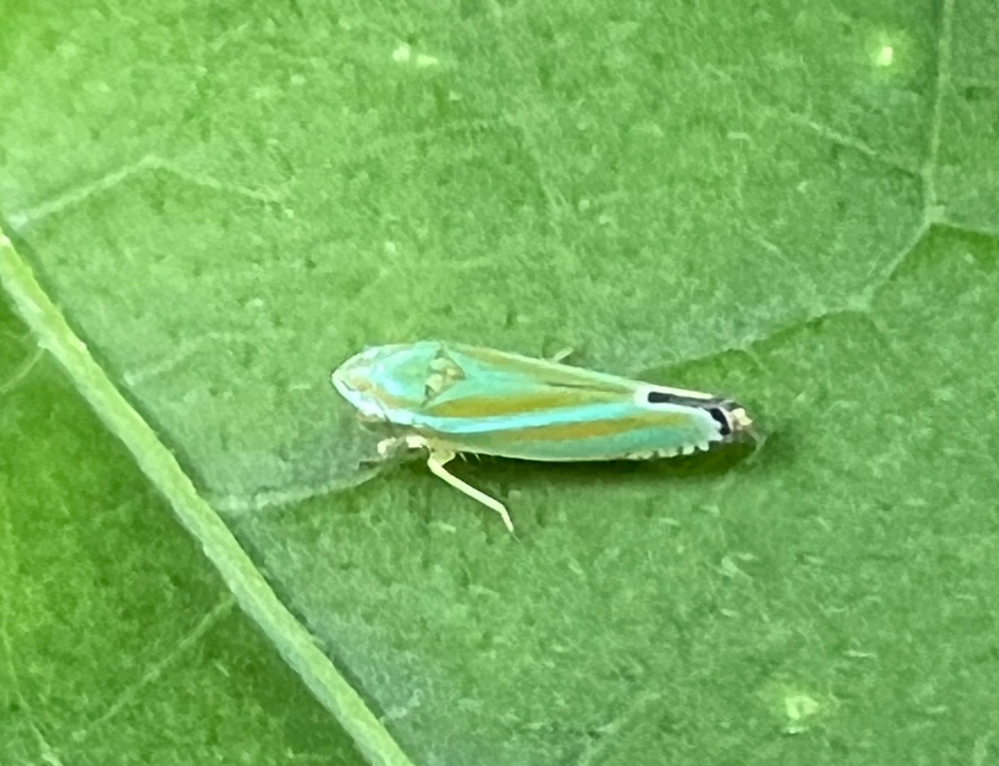 A Graphocephala versuta in Frederick Co., Maryland (7/31/2020). Verified by Kyle Kittelberger/BugGuide.