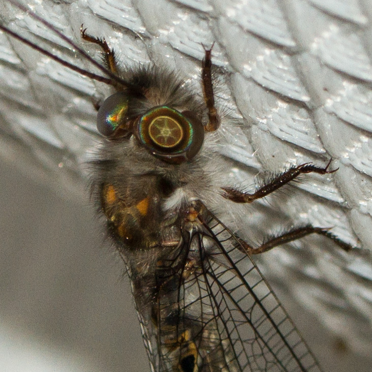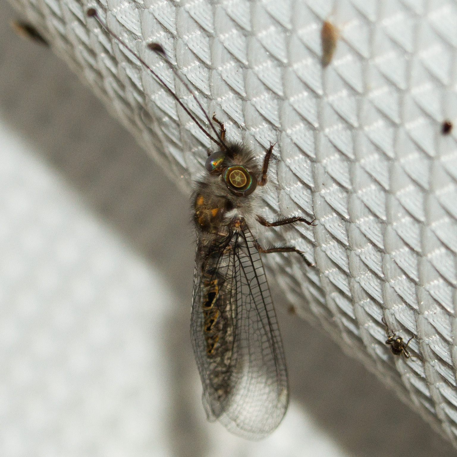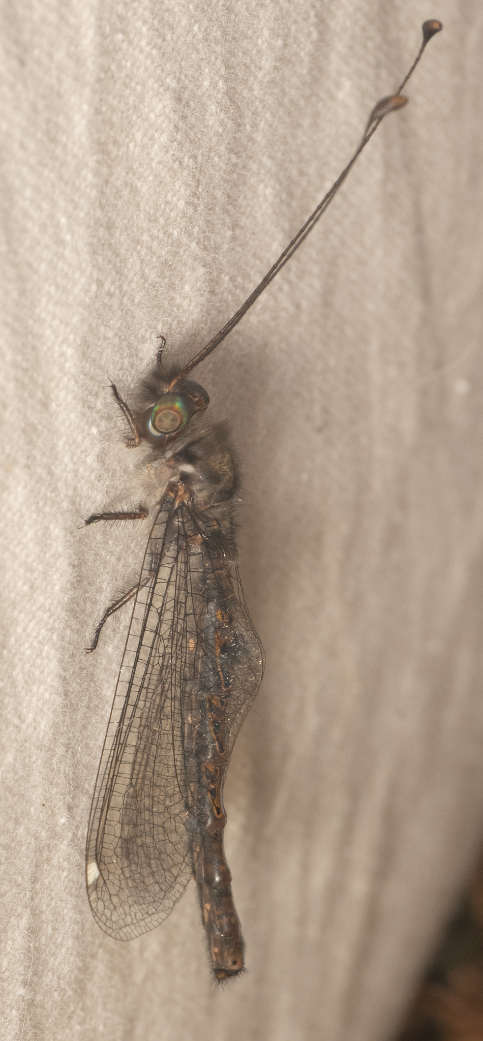 Note the cream-colored pterostigmata in this species. The locally much rarer southeastern species Macleay's Owlfly has dark pterostigmata.
