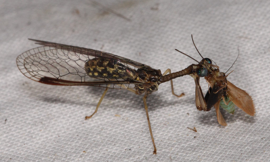 Food: Adults feed on small flying insects. Larvae hunt for spider eggs, with major hosts including are wolf spiders (Lycosidae), and the running crab spider Philodromus vulgaris.