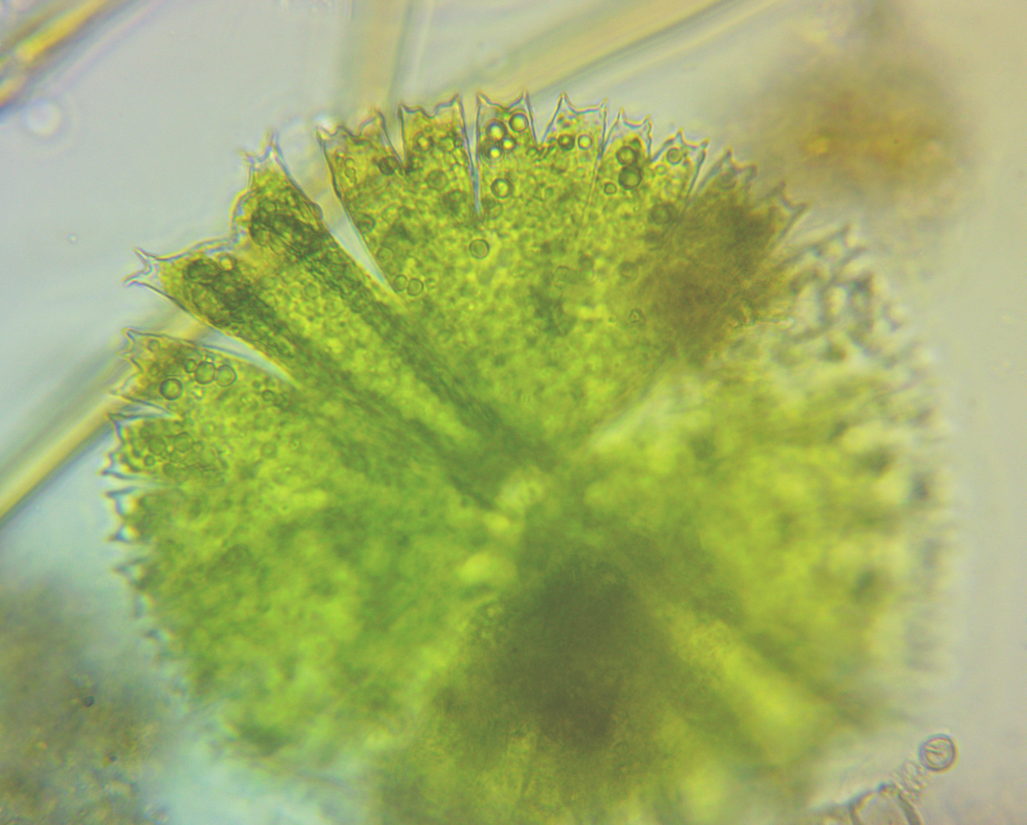 A Micrasterias compereana specimen collected from a Sphagnum ditch in Worcester Co., Maryland (12/26/2010). Photographed at 100x magnification.