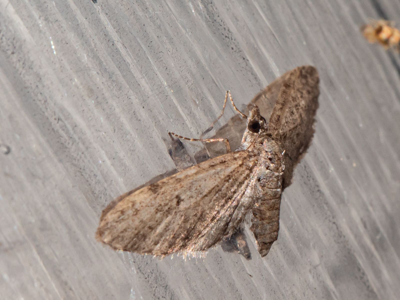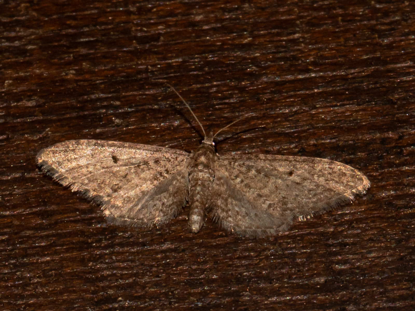 Adult specimens of Eupithecia are typically small, often between 12 and 35 mm, with muted colours, and display a large amount of uniformity between species.[3] As a result, identification of a specimen as part of genus Eupithecia is generally easy, but identifying the exact species is difficult and often reliant on examination of the dissected genitals.[3] Most species share a characteristic resting pose in which the forewings are held flat at a right angle to the body—that is, the costal margins of both forewings form a more-or-less horizontal line—while the hindwings are largely covered by the forewings.[8] They are generally nocturnal.[3]