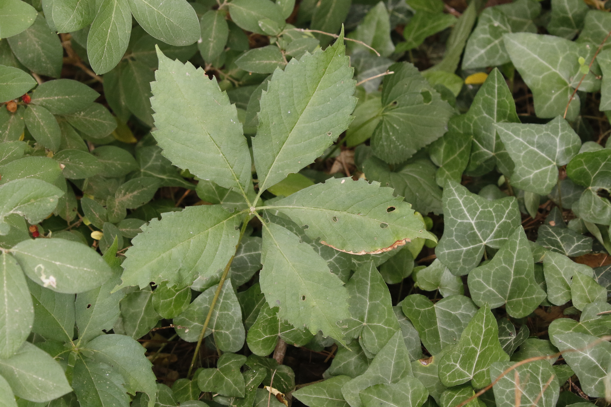 Larvae mine leaves of Virginia Creeper. (BugGuide)