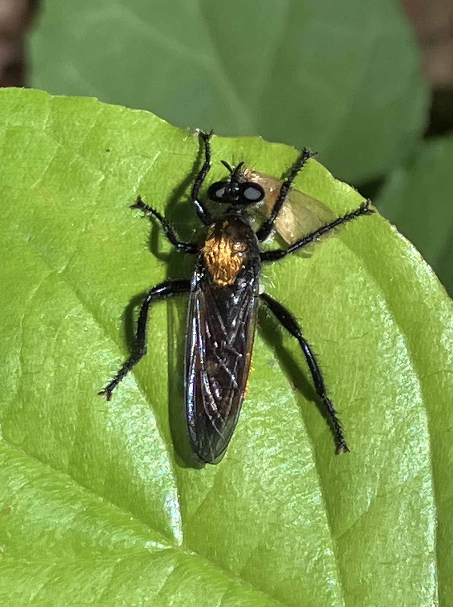 A Silky Laphria with prey in Frederick Co., Maryland (6/9/2013).