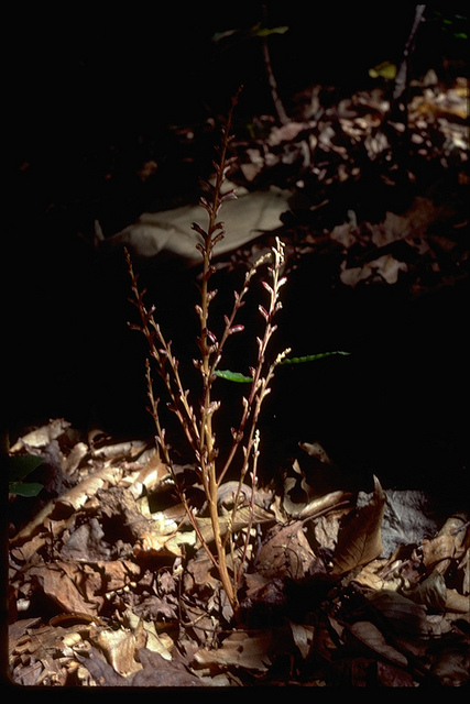 Beechdrops contain very small alternate, scale-like leaves, which are a vestigial structure from an ancestor which was photosynthetic.[6]