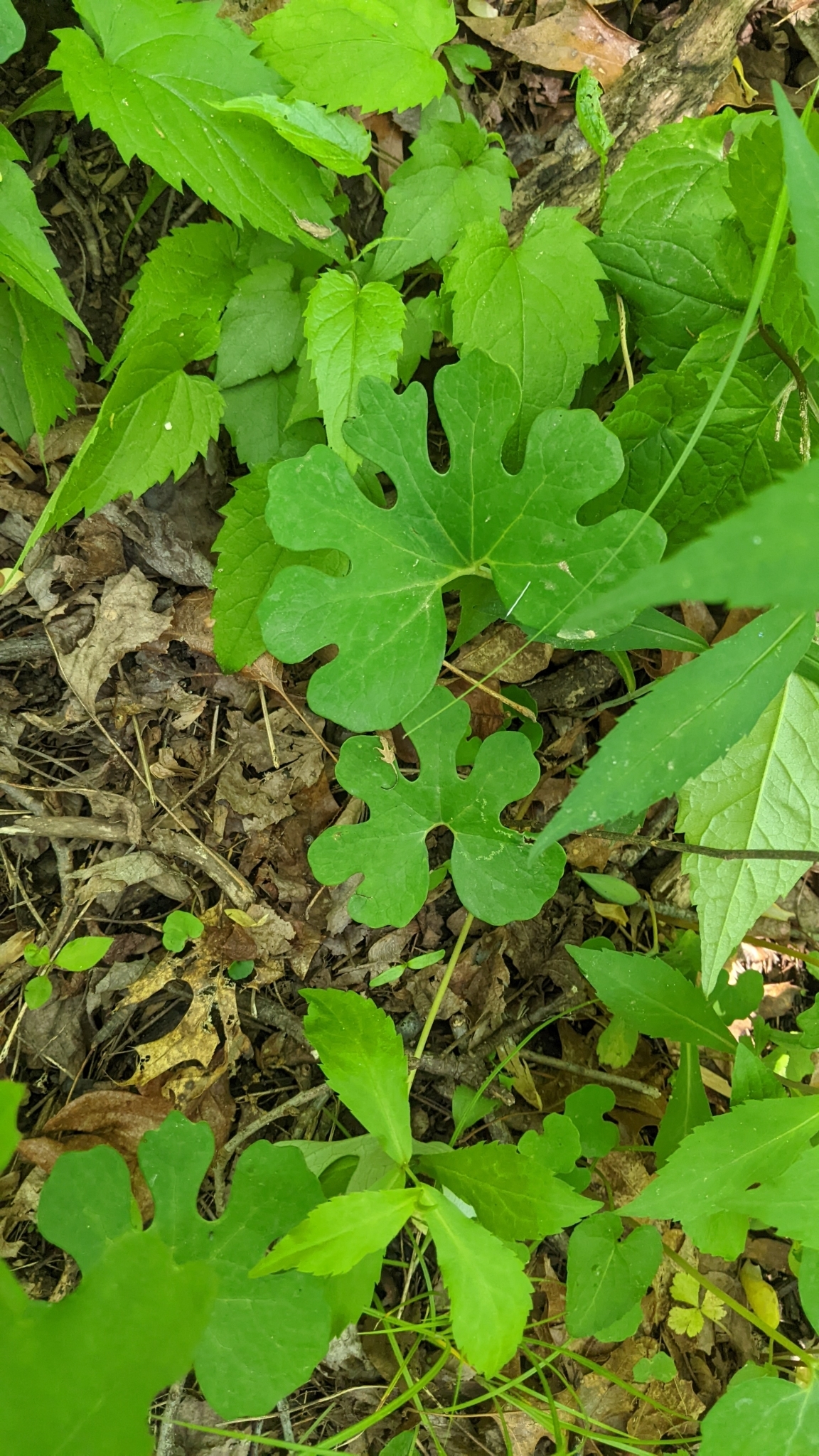 Sanguinaria canadensis is sometimes known as Canada puccoon,[5] bloodwort, redroot, red puccoon, and black paste.[4] Plants are variable in leaf and flower shape, and have been separated as a different subspecies due to these variable shapes, indicating a highly variable species.