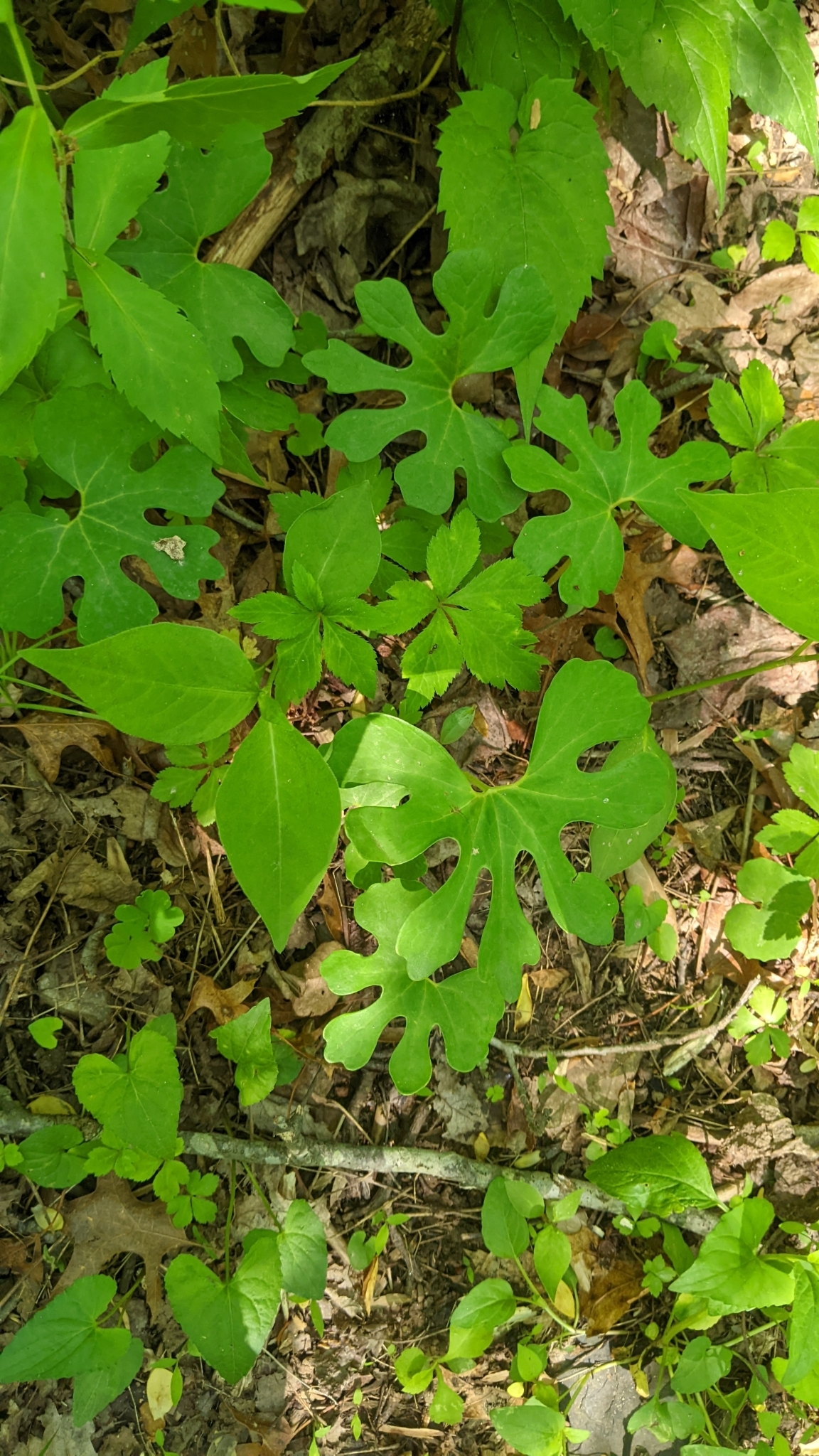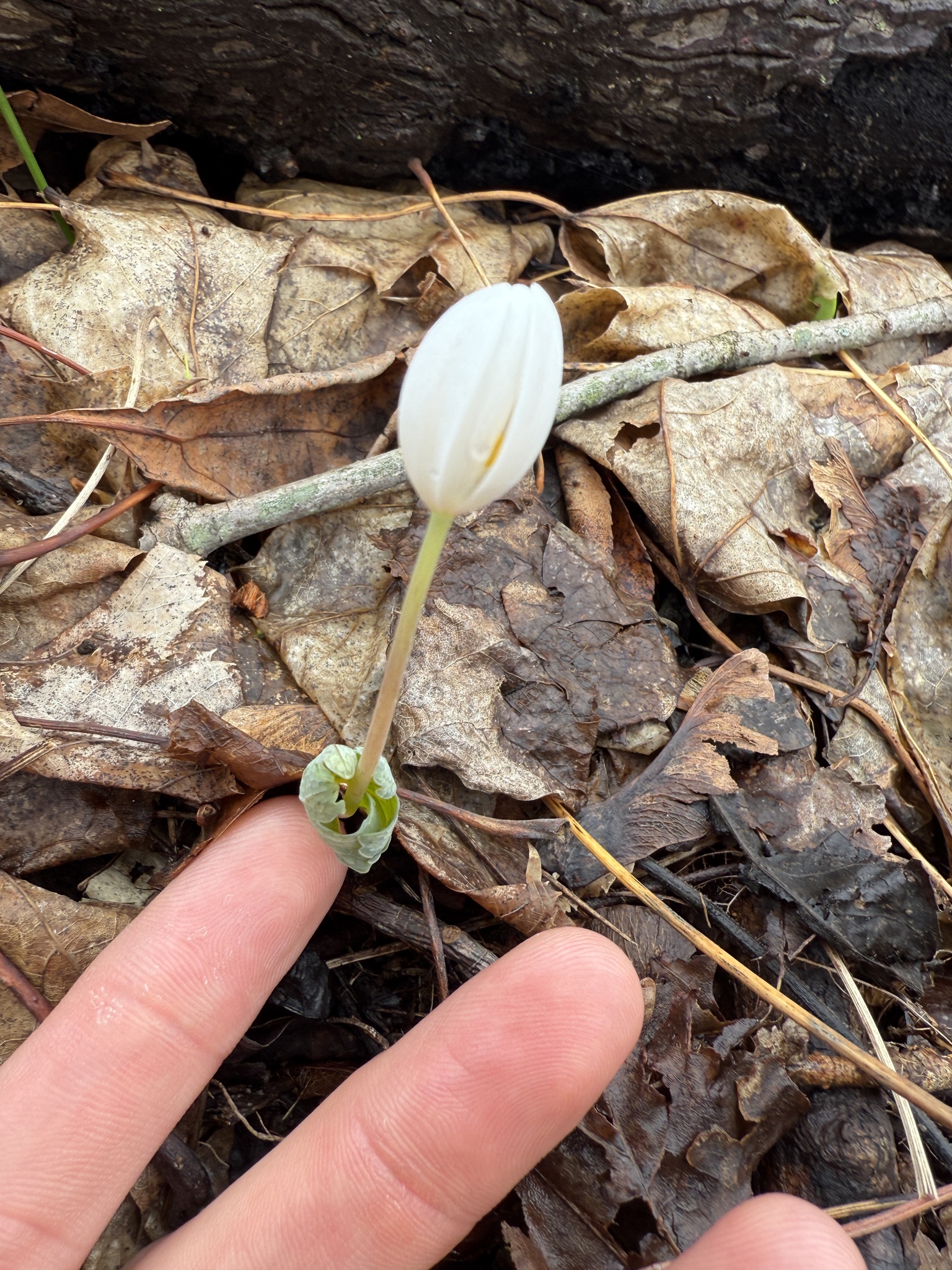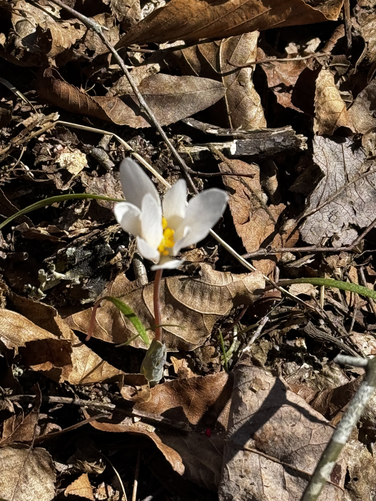 Sanguinaria canadensis grows in moist to dry woods and thickets, often on floodplains and near shores or streams on slopes. They grow less frequently in clearings and meadows or on dunes, and are rarely found in disturbed sites.