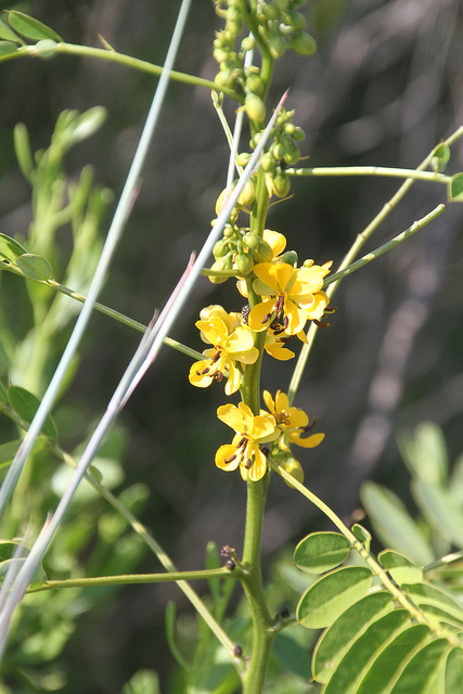 [edit]It is a larval host and nectar source for the Cloudless Giant Sulphur (Phoebis sennae) butterfly.[7] It is also of special value to native bumble bees.[7][9]