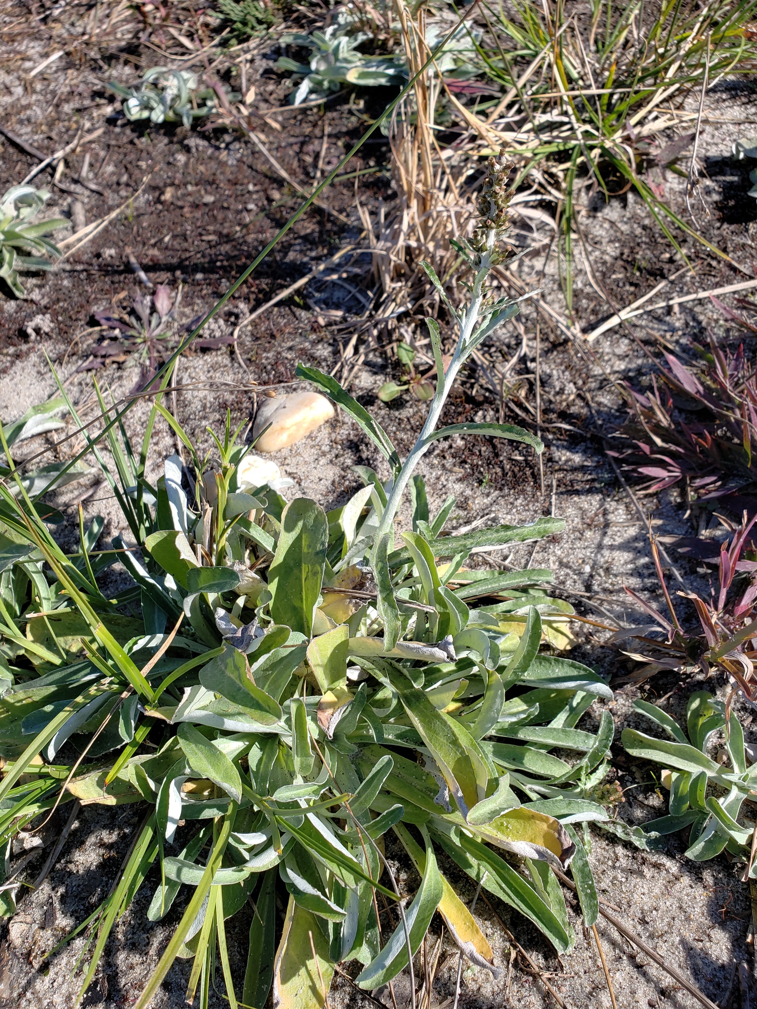 [edit]It is a small annual herb that produces lanceolate, alternate, wooly leaves and peg-shaped flowerheads in terminal clusters. The seeds are windborne. It can reach a height of approximately 0.4 meters (1.25 feet).[2]