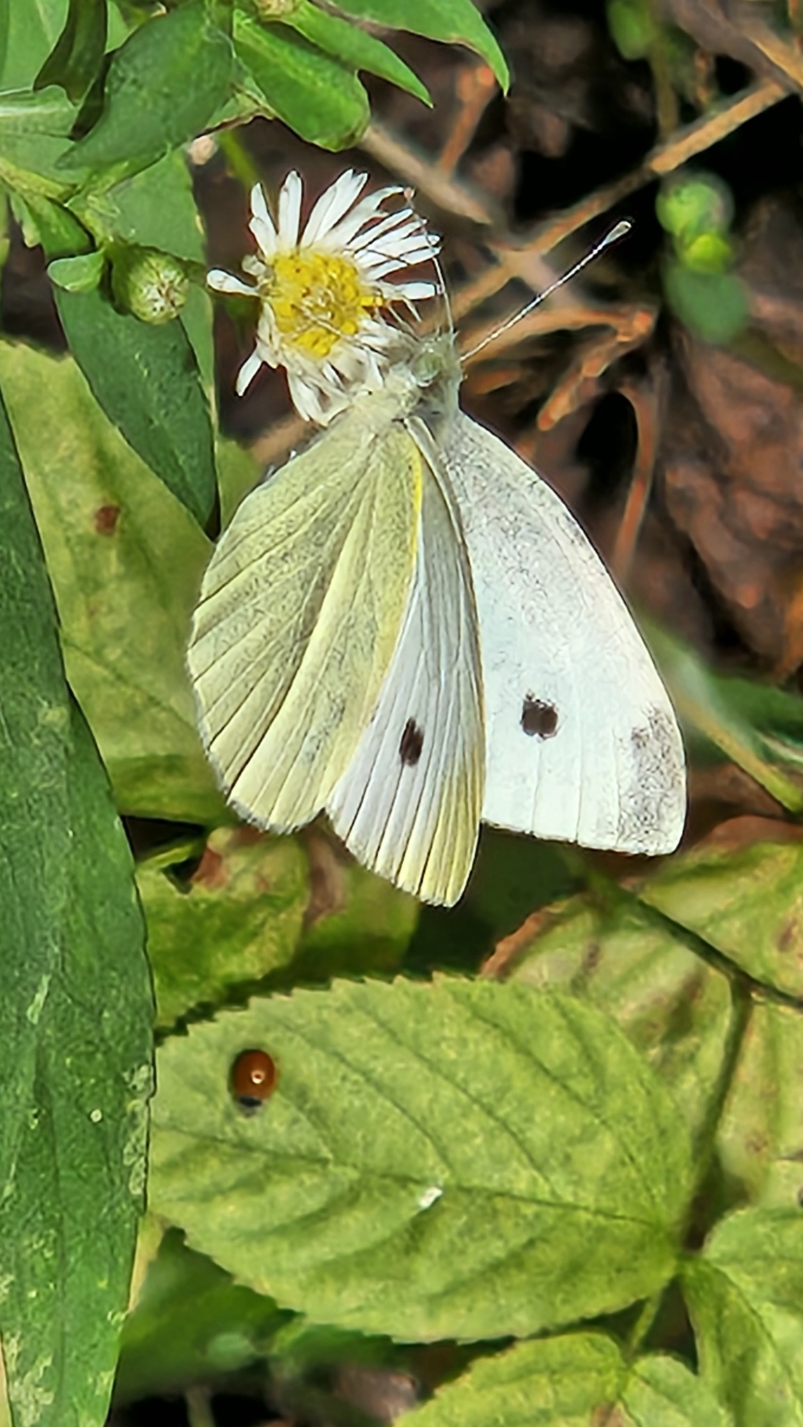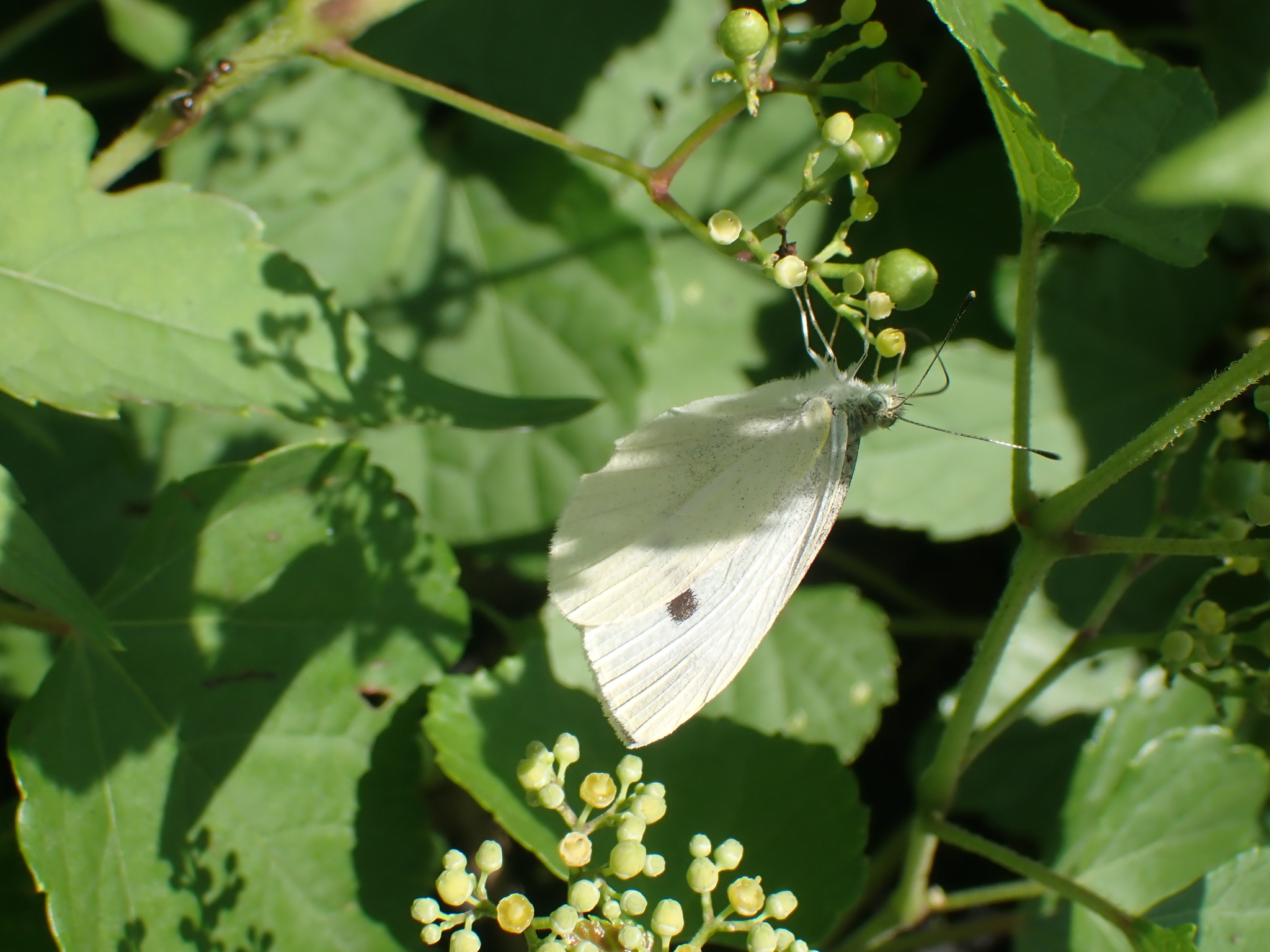 Pieris rapae is a small-to-medium-sized butterfly species of the whites-and-yellows family Pieridae. It is known in Europe as the small white, in North America and the United Kingdom as the cabbage white or cabbage butterfly,[note 1] on several continents as the small cabbage white, and in New Zealand as the white butterfly.[2] The butterfly is recognizable by its white color with small black dots on its wings, and it can be distinguished from P. brassicae by the latter's larger size and black band at the tip of the forewings.