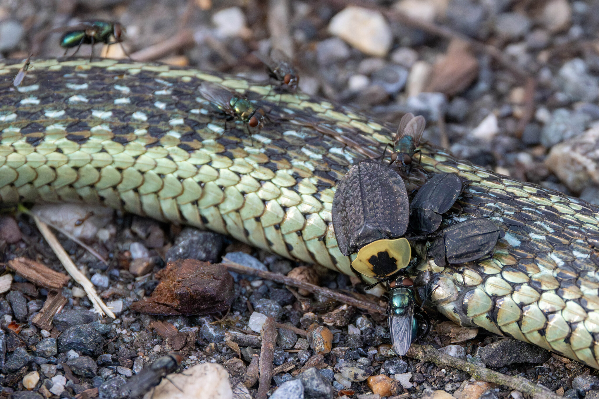 The beetle is a ground-dwelling silphid that emerges from its larval state to feed on carcasses in early summer, as its greatest abundance is from June through October. They arrive early during the decomposition process compared to other beetles, which are most prominent during late August. While they do feed on carcasses, they don’t exhibit any signs of parental care. [6]