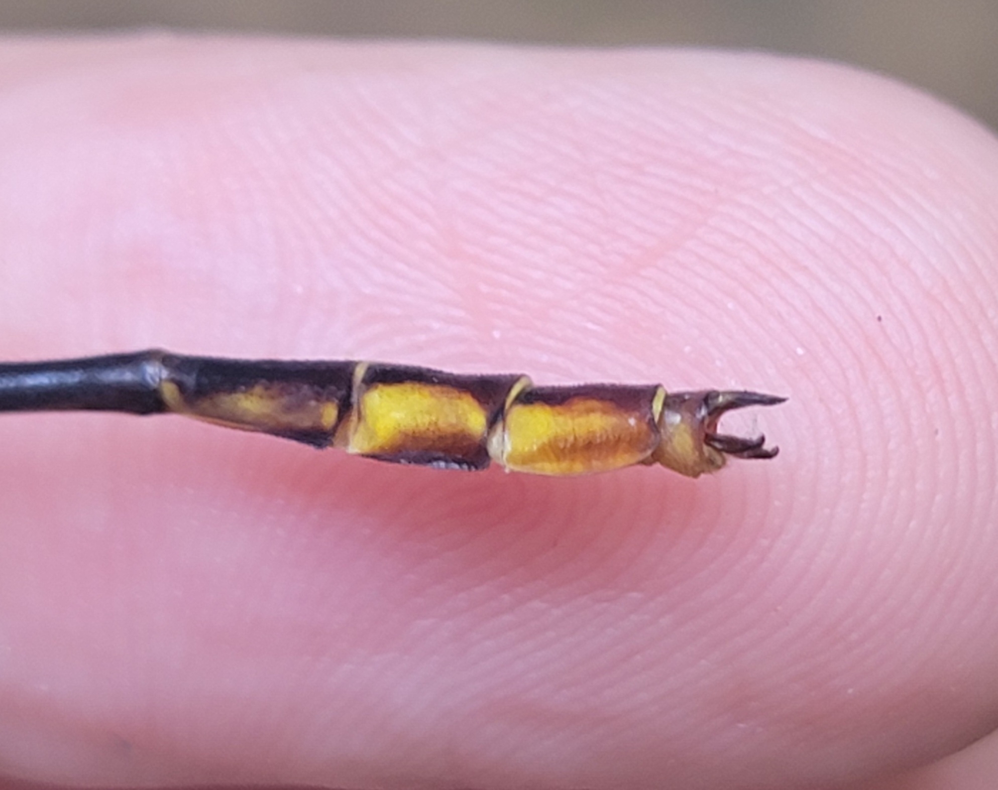 Laura's Clubtail (Stylurus laurae) is a denizen of forested creeks or rivers with riffles, clear water, and a sand or mud substrate. They are particularly fond of perching on overhanging vegetation at the breeding habitat (Paulson, 2011). In Maryland, Laura's Clubtail ranges widely through much of the coastal plain and portions of the piedmont, where is is considered uncommmon. It is also recorded from a single county on the eastern shore, where it is rare (Richard Orr's The Dragonflies and Damselflies of Maryland and the District of Columbia). This species is ranked as S2 (state rare)-S3 (watch list).