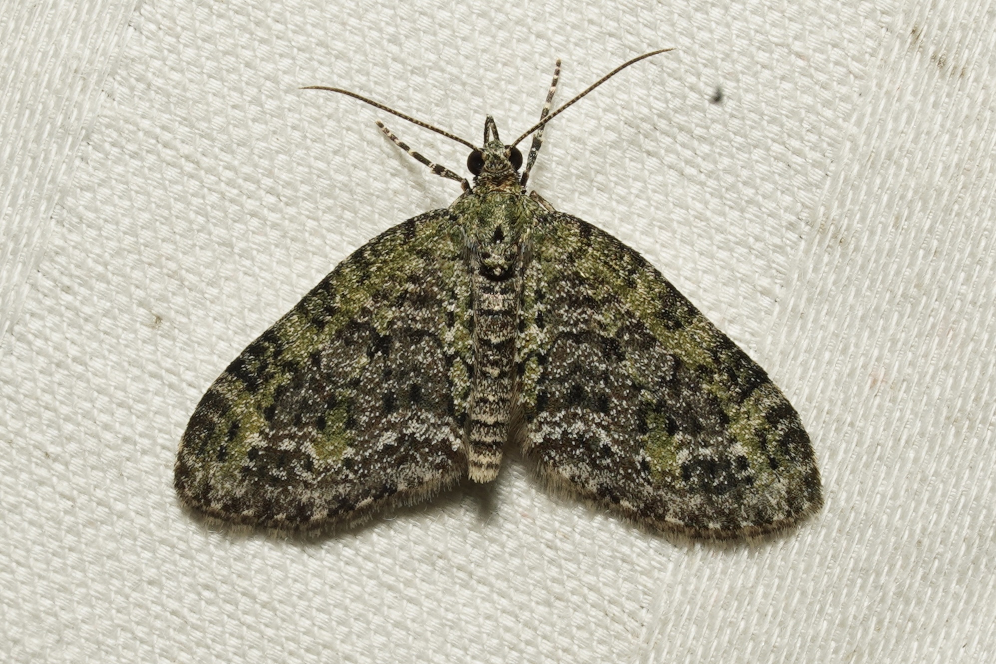 An Olive-and-black Carpet Moth in Nantucket Co., Massachusetts (5/18/2012).