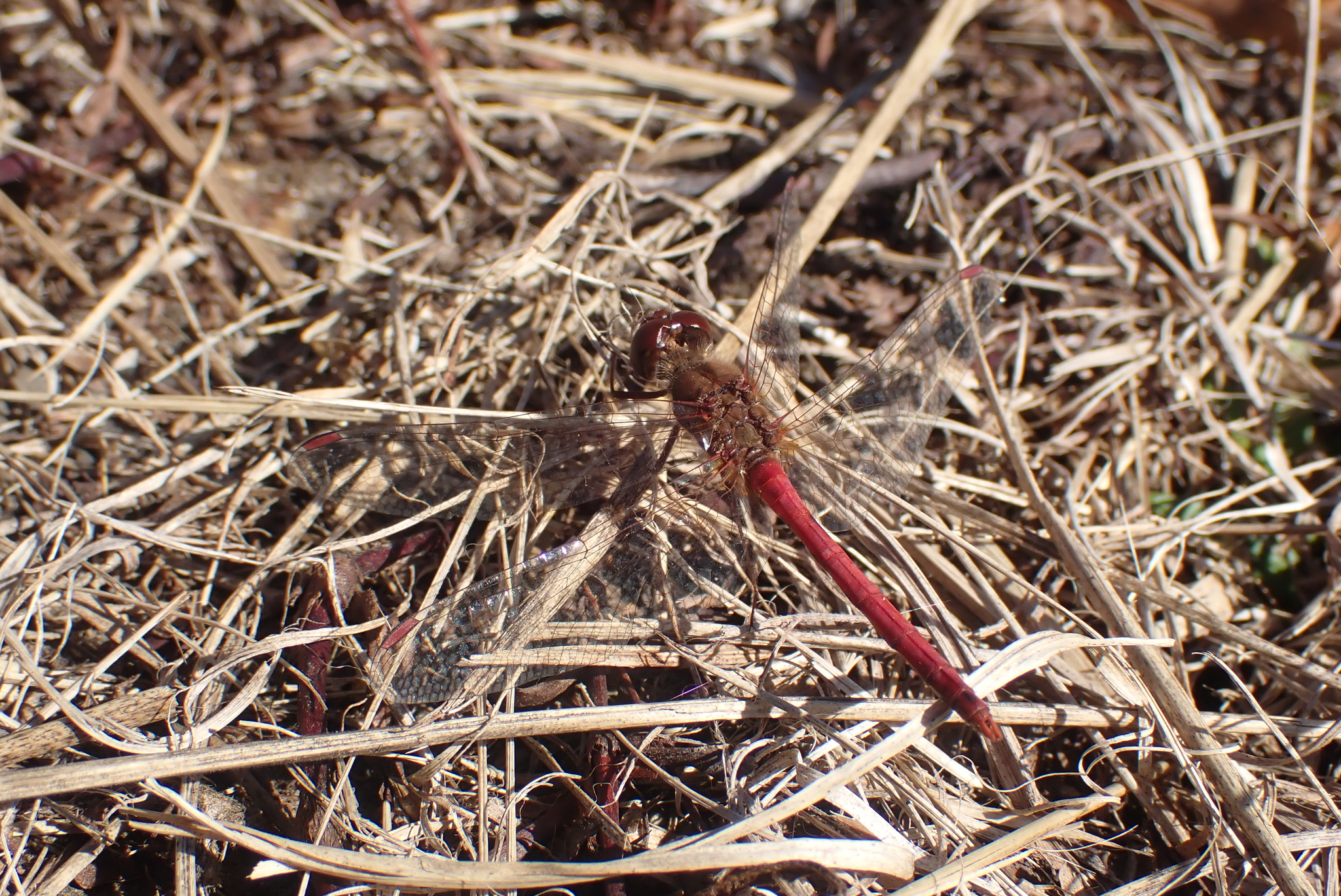 [edit]The naiads live in the debris of the bottoms of lakes and ponds. They do not actively pursue prey but wait for it to pass by, a strategy which affords them protection from other predators. The naiads emerge from the water to make the transition to adult dragonflies at night. Adults fly from early August through October. This species flies later in the fall than any other species in the Northwest, with observations as late as October 29 in Idaho and into November in Washington. The adults of this species hunt flying insects from perches on rocks or bare branches. The Latin name for this genus, Sympetrum, means "with rock" and refers to their habit of basking on rocks to absorb heat early in the day. This dragonfly is abundant where it occurs, with large numbers of pairs flying and laying eggs in tandem.