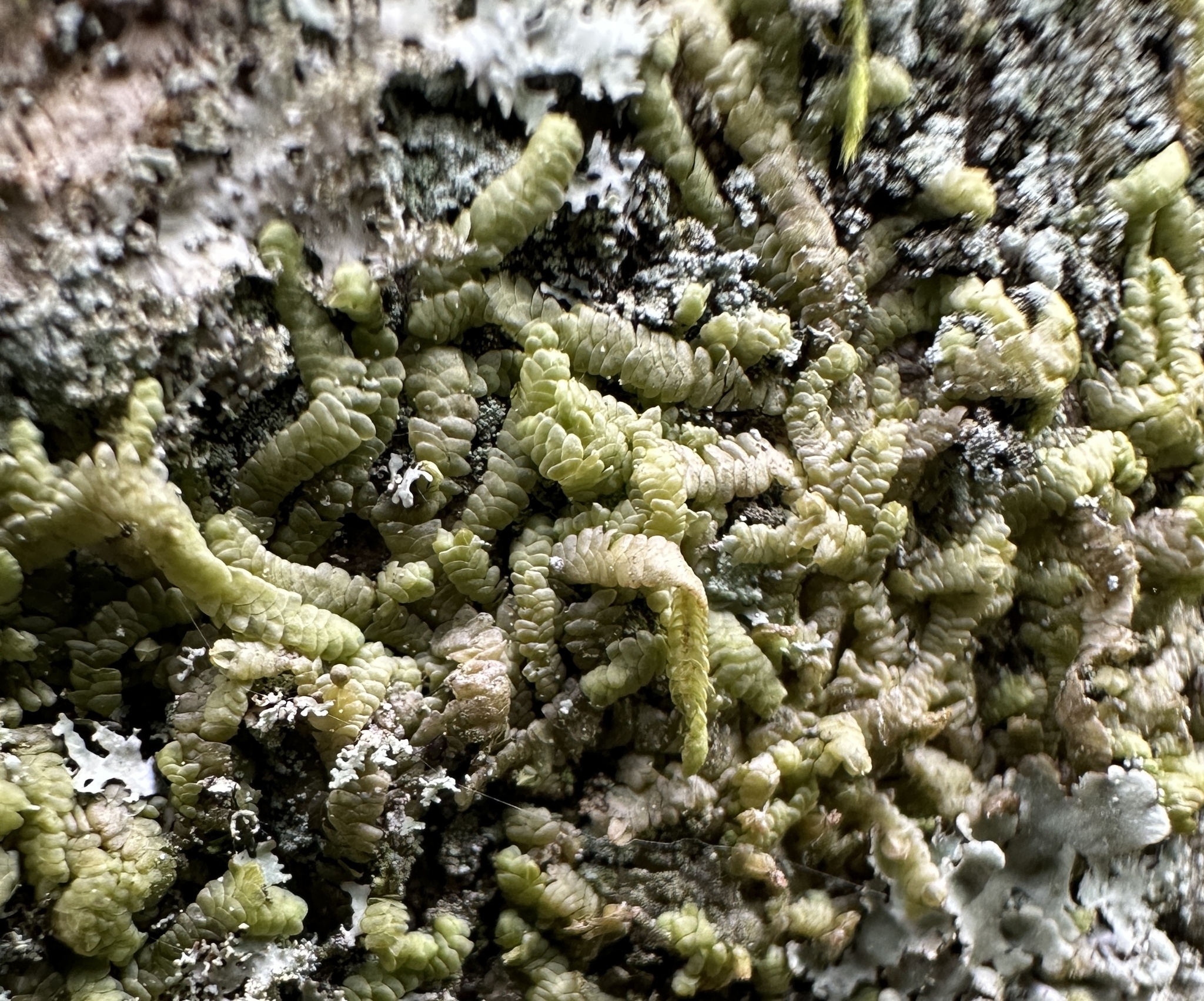 Cheilolejeunea conchifolia in Wicomico Co., Maryland (10/23/2025). (c) Birder20714, some rights reserved (CC BY-NC)