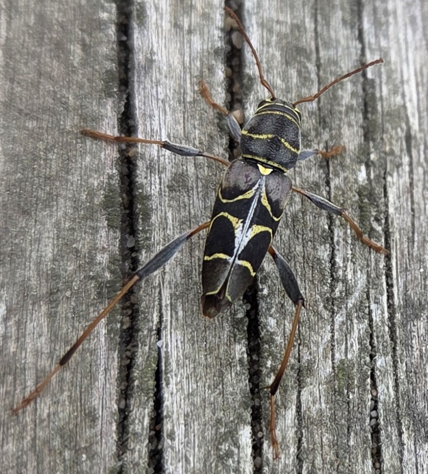 A Neoclytus scutellaris in Harford Co., Maryland (7/11/2019). Verified by Blaine Mathison/BugGuide.