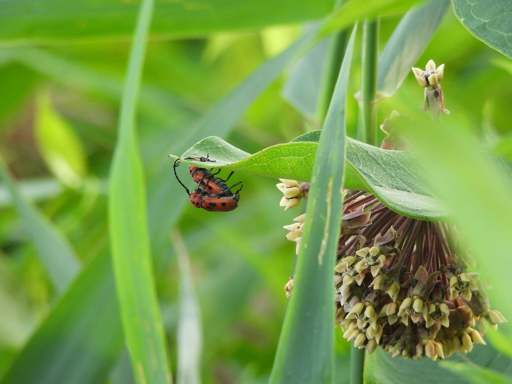 - ^ Erwin, Alexis C.; Züst, Tobias; Ali, Jared G.; Agrawal, Anurag A. (2014). "Above-ground herbivory by red milkweed beetles facilitates above- and below-ground conspecific insects and reduces fruit production in common milkweed". Journal of Ecology. 102 (4): 1038–1047. Bibcode:2014JEcol.102.1038E. doi:10.1111/1365-2745.12248. JSTOR 24541559.